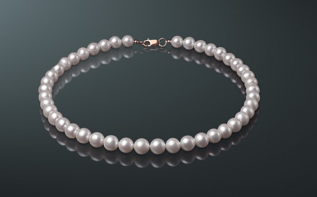 Ожерелье из белого морского жемчуга Aкойя, с замком из золота 585˚.